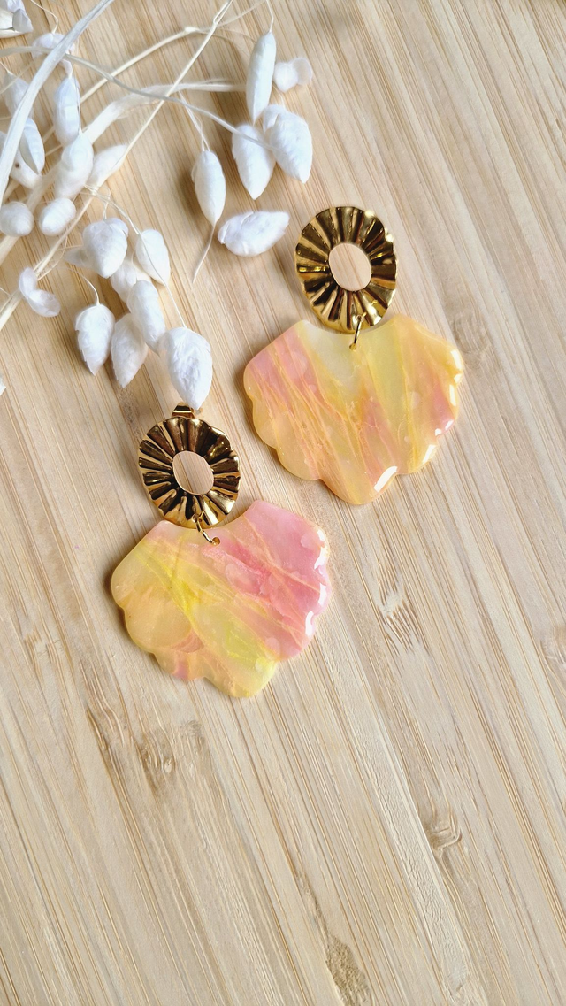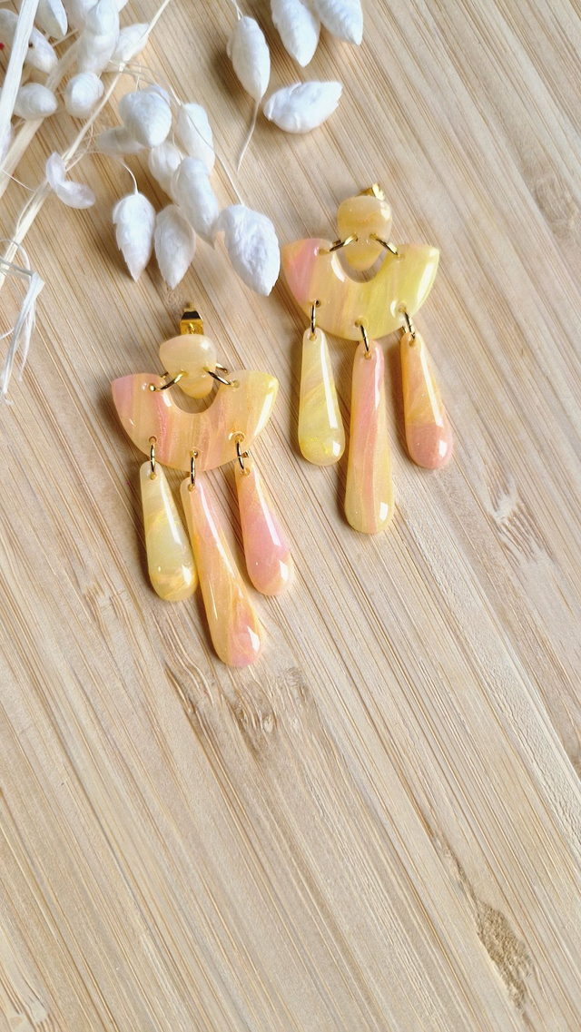 Été Enflammé - Boucles d'oreilles en pâte polymère et résine.